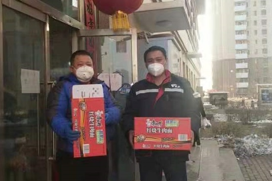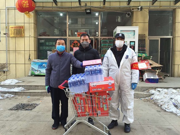 康居家園公租房好心住戶,第一時間把2箱84消毒液、100個口罩送到了項目經(jīng)理手中,便利店工作人員送來了方便面。祥和苑公租房不愿留下姓名的業(yè)主把方便面、牛奶、礦泉水放到了秩序維護部?;菪略饭夥恐驹刚邚堖M軍捐贈了25千克消毒液、20雙勞保手套。兄弟單位金橋熱網(wǎng)分公司為物業(yè)工作人員提供了護目鏡。
