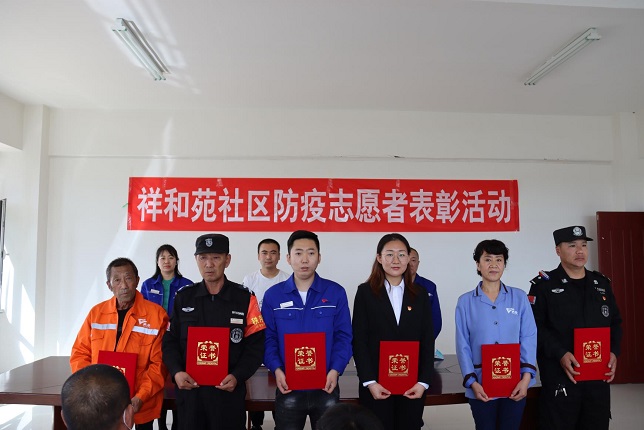 在這次表彰活動中,共授予23名志愿者和物業(yè)工作人員榮譽證書,祥和苑公租房項目經(jīng)理隗公樸接過鮮紅的榮譽證書說:在這次疫情防控工作中,祥和苑社區(qū)黨組織和物業(yè)公司黨支部對項目處工作人員的關(guān)愛,是物業(yè)人不斷奮戰(zhàn)的精神動力,有黨旗的地方就有力量,作為一名老黨員,我會牢記使命,不負榮譽,不負職責(zé),帶領(lǐng)祥和苑項目處全體工作人員,積極配合小黑河鎮(zhèn)社區(qū)做好各項工作,再接再厲,守護好小區(qū)業(yè)主的健康和平安。