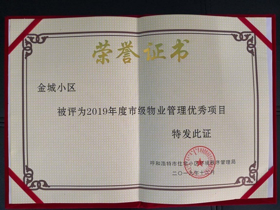 9月29日,城發(fā)物業(yè)金城小區(qū)項(xiàng)目被呼和浩特市住宅小區(qū)環(huán)境秩序管理局評(píng)為物業(yè)管理2019年度市級(jí)優(yōu)秀項(xiàng)目。