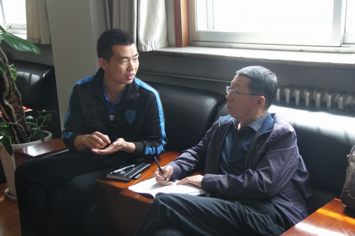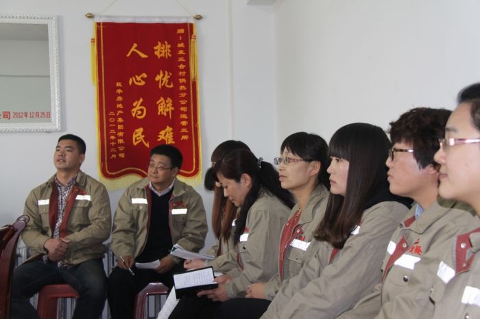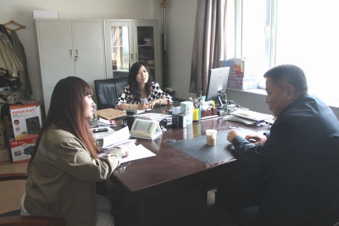 三合村供熱分公司員工向領導提意見。亞利攝