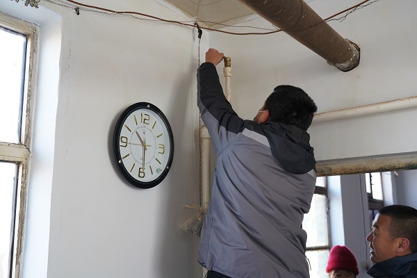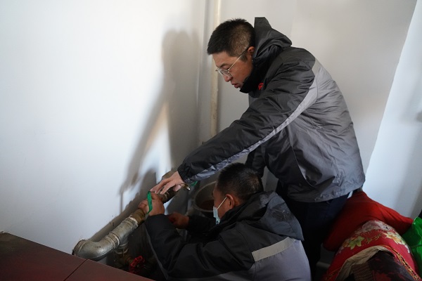 在回訪(fǎng)村中二站南線(xiàn)的路上,一位年近九十的大娘著急地朝我們走來(lái)。她說(shuō):"到我家看看吧,暖氣不熱。"工作人員跟隨老人來(lái)到其家中。大娘家為小南房,大約20平米左右,四面漏風(fēng),她的老伴身著棉衣盤(pán)腿坐在炕上。工作人員開(kāi)始進(jìn)行排氣、調(diào)節(jié)閥門(mén)、檢查過(guò)濾器,最后排查發(fā)現(xiàn)管道內(nèi)有異物堵塞,經(jīng)過(guò)排污,大娘家中的暖氣逐漸升溫。大爺激動(dòng)地說(shuō):"你們給我修暖氣,忙的連口水也沒(méi)喝,娃娃們真好!我家院里有李子樹(shù),明年李子熟了,你們過(guò)來(lái)吃。"客服處處長(zhǎng)云躍看著大爺家簡(jiǎn)陋的窗戶(hù),略有所思.....稍后他說(shuō):"我們過(guò)幾天給大爺家安裝棉窗簾和門(mén)簾,讓溫暖到位、服務(wù)到位,室溫達(dá)標(biāo),讓老兩口溫暖過(guò)冬。"