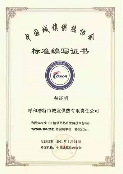 近日,集團公司收到參與《長輸供熱熱水管網(wǎng)技術(shù)標(biāo)準(zhǔn)》編寫證書。