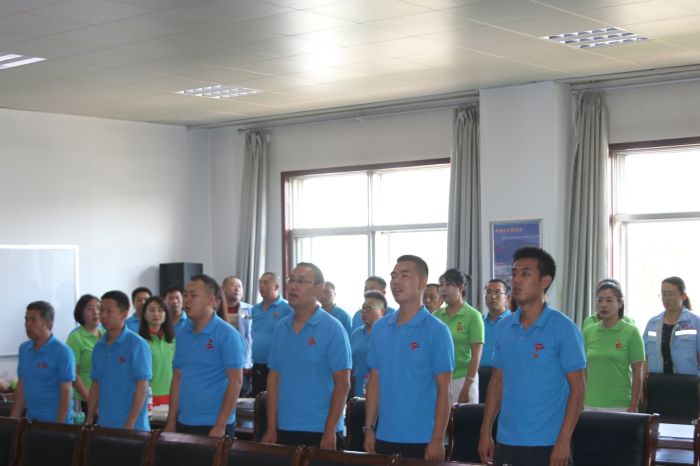 大會在莊嚴的《國歌》聲中拉開帷幕,面對鮮紅的黨旗,由分公司組織委員王艷雄領誓,全體黨員舉起右拳面向黨旗宣誓我志愿加入中國共產(chǎn)黨,擁護黨的綱領,遵守黨的章程,重溫入黨誓詞使全體黨員再一次受到了心靈的洗禮、思想的震撼。