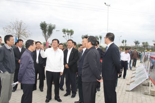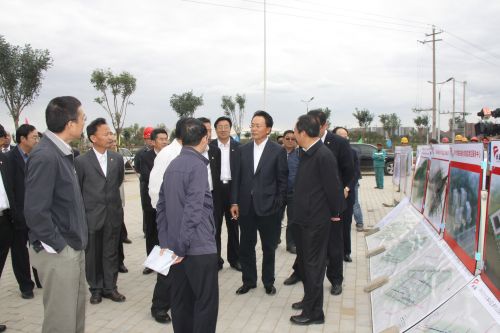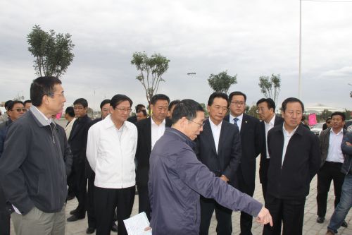 2012年9月12日,中國農(nóng)業(yè)發(fā)展銀行領(lǐng)導(dǎo)一行來我市考察東客站項(xiàng)目工程,市長(zhǎng)秦義、副市長(zhǎng)孫建華等陪同考察。圖為公司副總經(jīng)理史繼文介紹東客站項(xiàng)目建設(shè)情況。