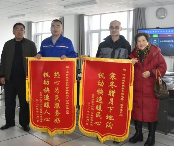 12月3日上午,東苑小區(qū)兩位用戶代表來到金橋分公司贈送錦旗,對金橋分公司快速解決東苑小區(qū)單元樓不熱問題表示感謝。