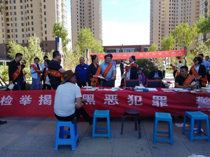 活動現(xiàn)場,娜仁同志帶領大家為小區(qū)居民發(fā)放了“十五種重點黑惡勢力違法犯罪活動”宣傳單及《掃黑除惡專項斗爭知識問答》宣傳冊百余份,并圍繞開展“掃黑除惡”專項斗爭的目的、新一輪掃黑除惡專項斗爭的重點及涉黑涉惡線索舉報方式等內(nèi)容及知識點進行了答疑解惑。