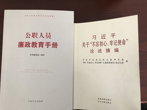 會上還學習了《習近平關于“不忘初心、牢記使命”重要論述選編》第五章——把政治建設擺在首位,不斷增強“四個意識”、堅定“四個自信”、做到“兩個維護”?!豆毴藛T廉政教育手冊》國企領導人切莫損公肥私、國企領導人不得濫用經(jīng)營權等方面內(nèi)容。