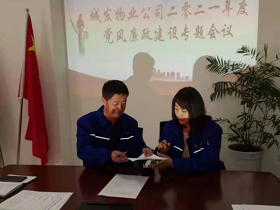 4月14日下午,城發(fā)物業(yè)公司組織全體黨員干部召開2021年度黨風(fēng)廉政建設(shè)專題會(huì)議。