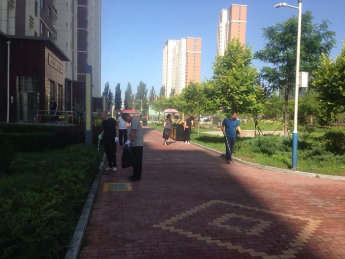 客服提升小組在小區(qū)明顯位置擺放展臺和宣傳畫,向業(yè)主征詢服務滿意度,發(fā)放關于消防安全等宣傳單;保潔綠化小組成員配合小區(qū)全體保潔人員開展清掃環(huán)路衛(wèi)生、撿拾草坪內(nèi)的垃圾、清洗垃圾箱等衛(wèi)生清潔工作;工程提升小組成員對金城小區(qū)的單元門開啟不靈、關閉不嚴等問題進行了現(xiàn)場維修。